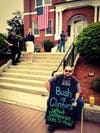Both liberty-minded Republicans and independents, including members of the New Hampshire Tea Party Coalition, as well as members of the “no labels” group and climate change activists stood outside of the Adams Memorial Opera House with signs that criticized the candidate’s support on a variety of issues from Common Core to NSA spying to lack of an environmental plan.