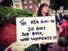 One sign featured his father and brother, both former presidents, with the words, “No Banker Left Behind.” Others criticized Hillary Clinton, too, suggesting there wasn’t much difference between Jeb or Hillary.