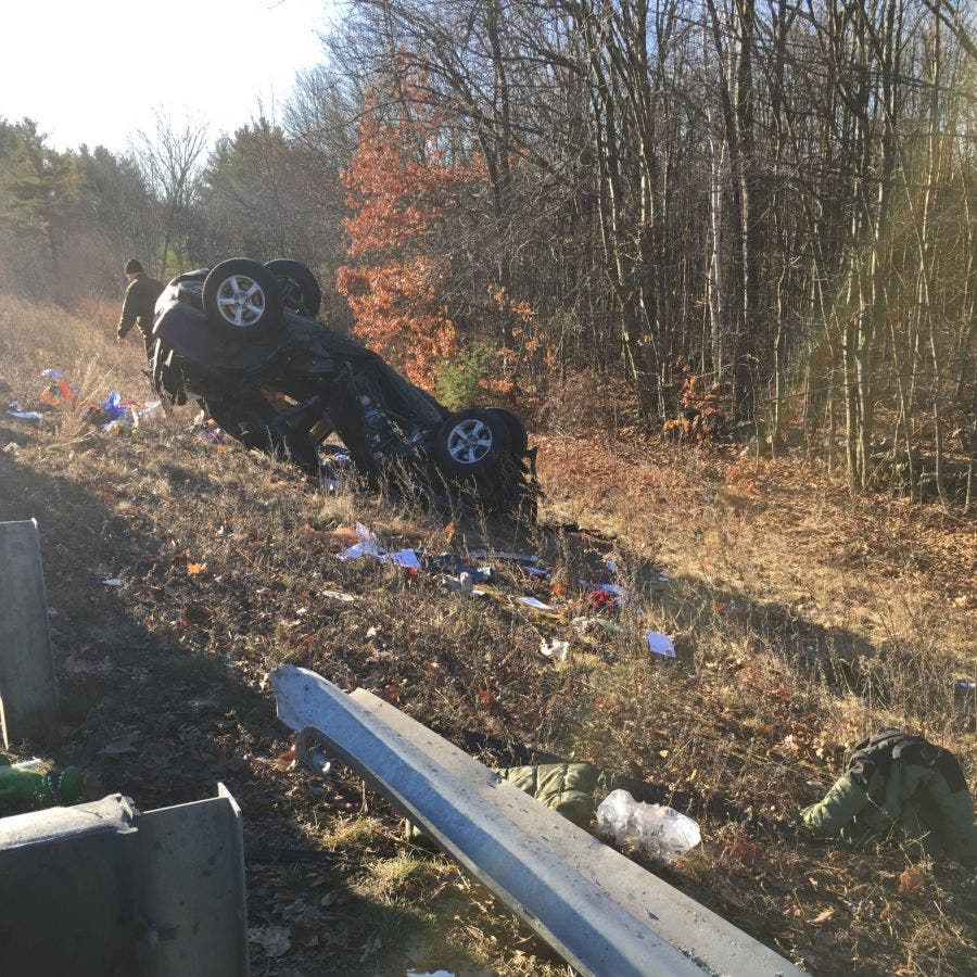 Troopers from Troop B found a 2005 Mazda Tribute, being operated by a 27-year-old Manchester woman, ejected from the vehicle, that was rolled over on the side of the road.