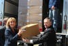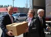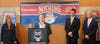 Captions: Mel Gosselin, executive director of the NH Food Bank, speaks at a press conference kicking off this year’s Nothing Campaign, along with Gov. Maggie Hassan, Thomas Blonski, president and CEO of Catholic Charities NH, and Joe Carelli, president of Citizens Bank, New Hampshire and Vermont. Hassan, Blonski, Carelli, and Gosselin were also pictured unloading cans for the event.
