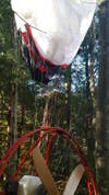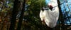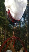 According to Jeffrey Hastings of Frame of Mind Photography, who took these photos, the man crashed in front of his wife and kids. He was about 30 feet off the ground in the tree and then fell out. Later, the man walked out of the woods and was assisted by Candia Fire and Rescue teams. The man was later transported to the hospital.