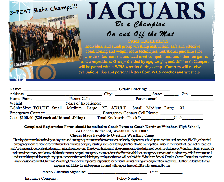The cost of camp is only $100 per wrestler, and additional siblings are only $25 each, so bring those curious and crazy younger siblings along! Our biggest goal is to promote wrestling, and any time Windham or other towns can get full families of 2, 3, 4+ siblings into the sport, it’s a good thing for our teams long-term. So, for those signing up an older sibling, please know that the whole crew is welcome to try it out.