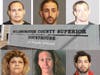 Court image via Patch staff; police file photos.