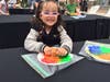 PHOTO 1: Mileydi Jaynes of Bedford, age 6, is all smiles as she works on her painting craft during Read and Play on the Green with Merrimack Public Library at Merrimack Premium Outlets.
