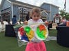 PHOTO 2: Violet McCloud, age 5, of Merrimack shows off the work of art she made during craft time at Read and Play on the Green with Merrimack Public Library at Merrimack Premium Outlets.