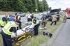 The crash forced the minivan up onto the guardrail with the Kia becoming stuck. The Sentra went through the guardrail and onto the northbound side of the highway.
