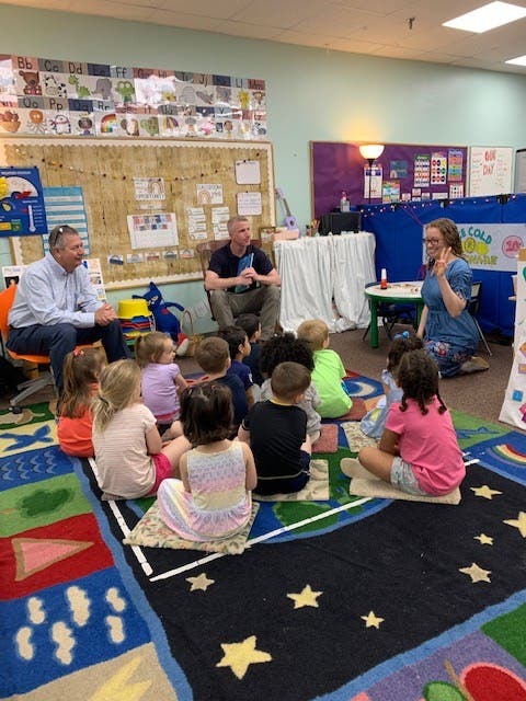 Connor Jennings, Community Relations Specialist from Eversource Energy, visited the YMCA of Greater Nashua’s Early Education Center at the Merrimack YMCA this week. In addition to a tour of the Y’s facility, he took a few minutes to read a book to students in the Y’s Wildcat Preschool Room, where Miss Mia is lead teacher. Eversource Energy has supported the Y’s annual campaign with a $1500 gift toward scholarship assistance for children to attend the Early Education Center.