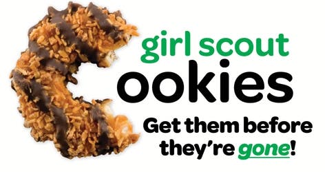 Here are the last two cookie booths in town scheduled for Sunday, April 12: