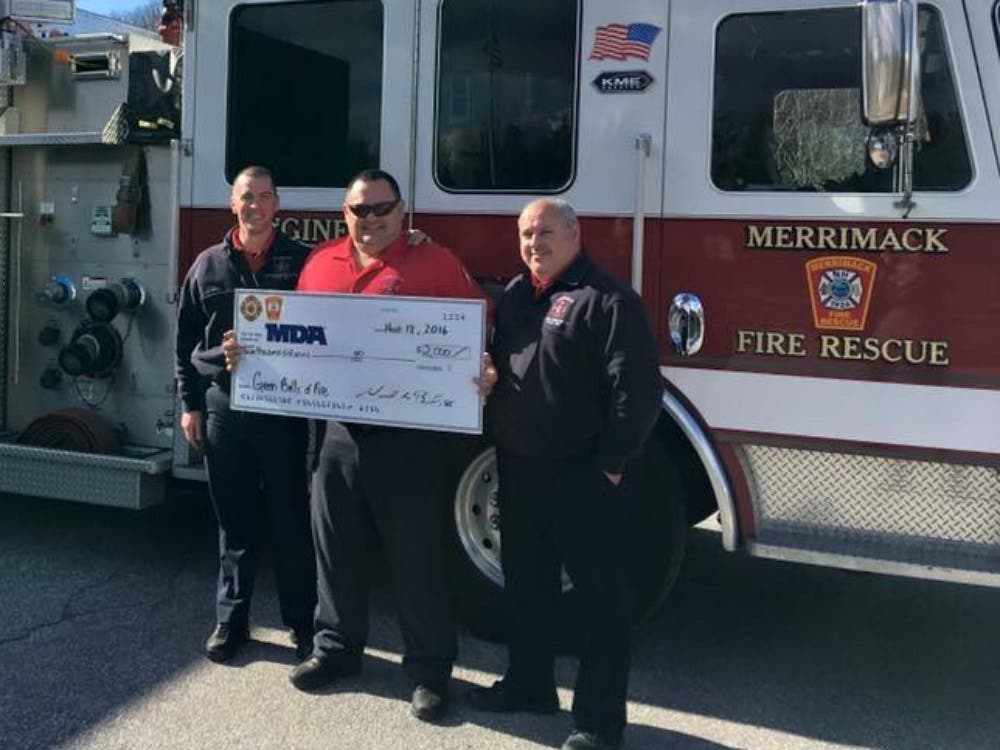MERRIMACK, NH - The Professional Firefighters of Merrimack Local 2904 raised $2,000 to help kids and adults with muscular dystrophy, ALS, and related diseases that severely limit strength and mobility live longer and grow stronger, at the 2nd Annual Green Balls of Fire bowling tournament on March 13, 2016, according to a press statement.