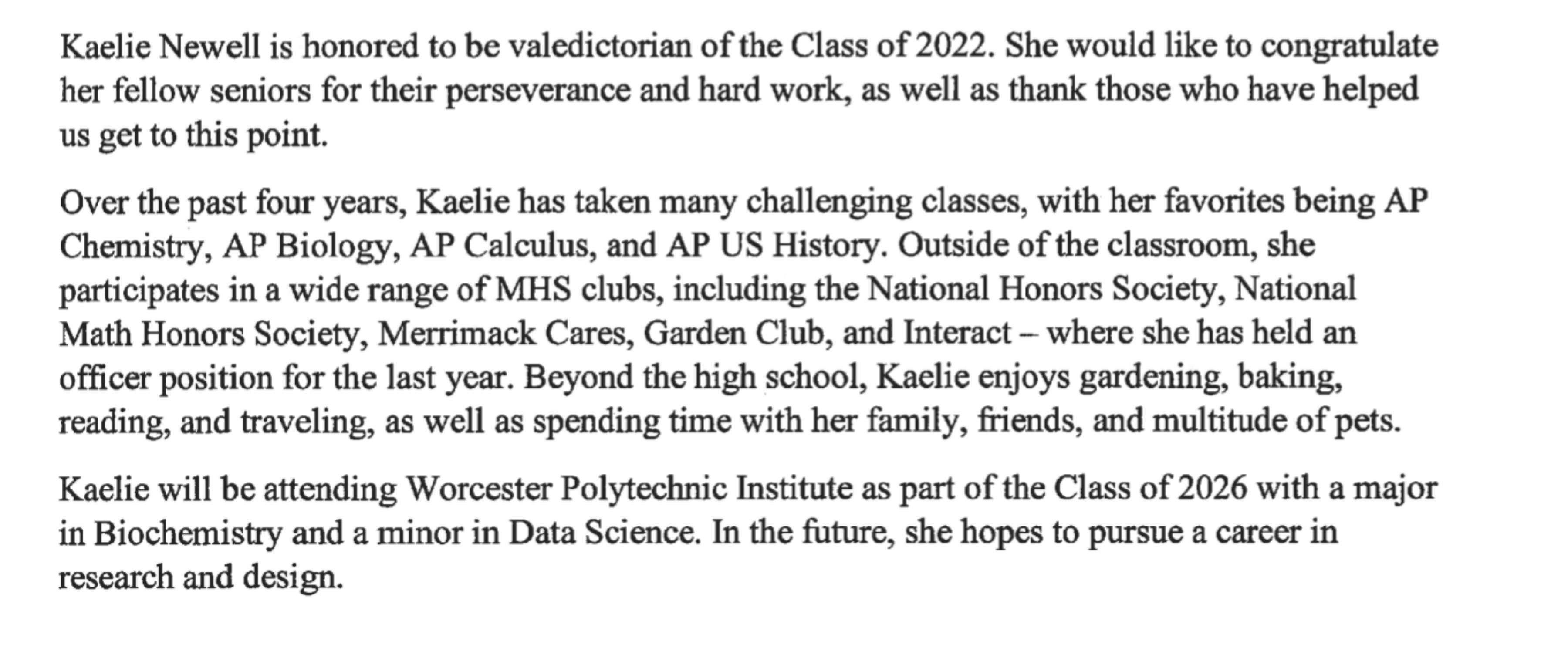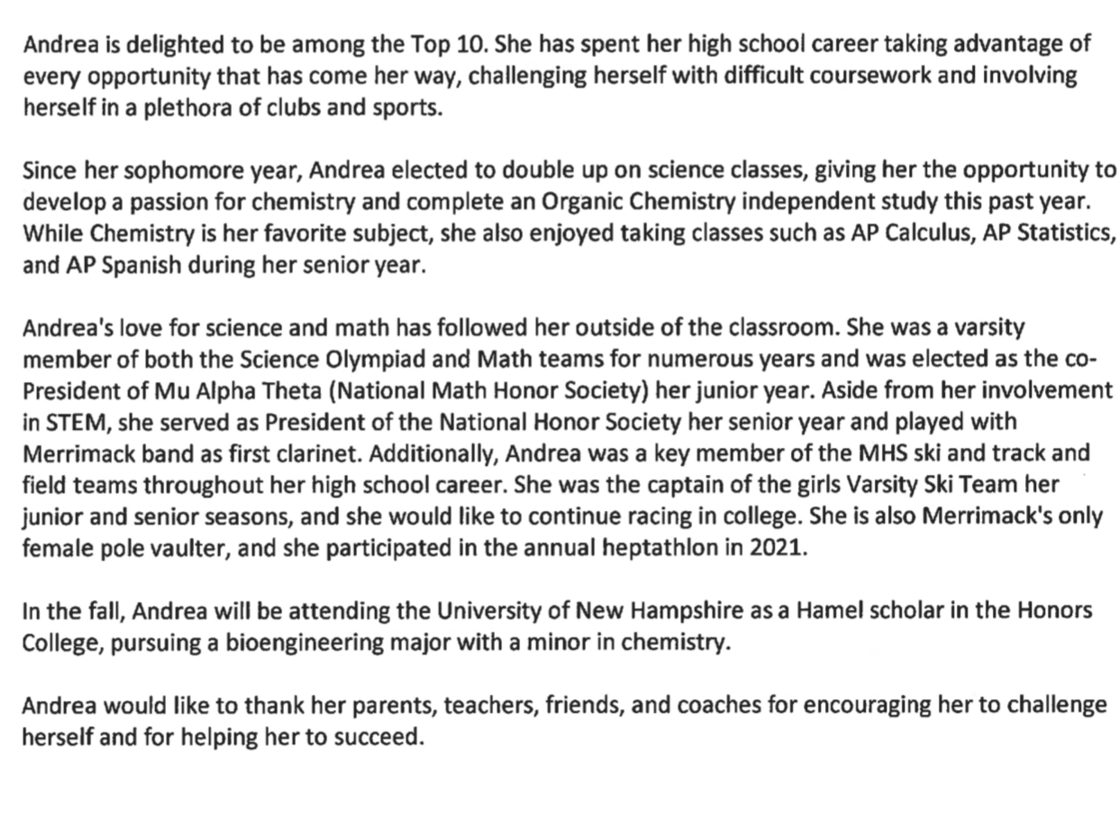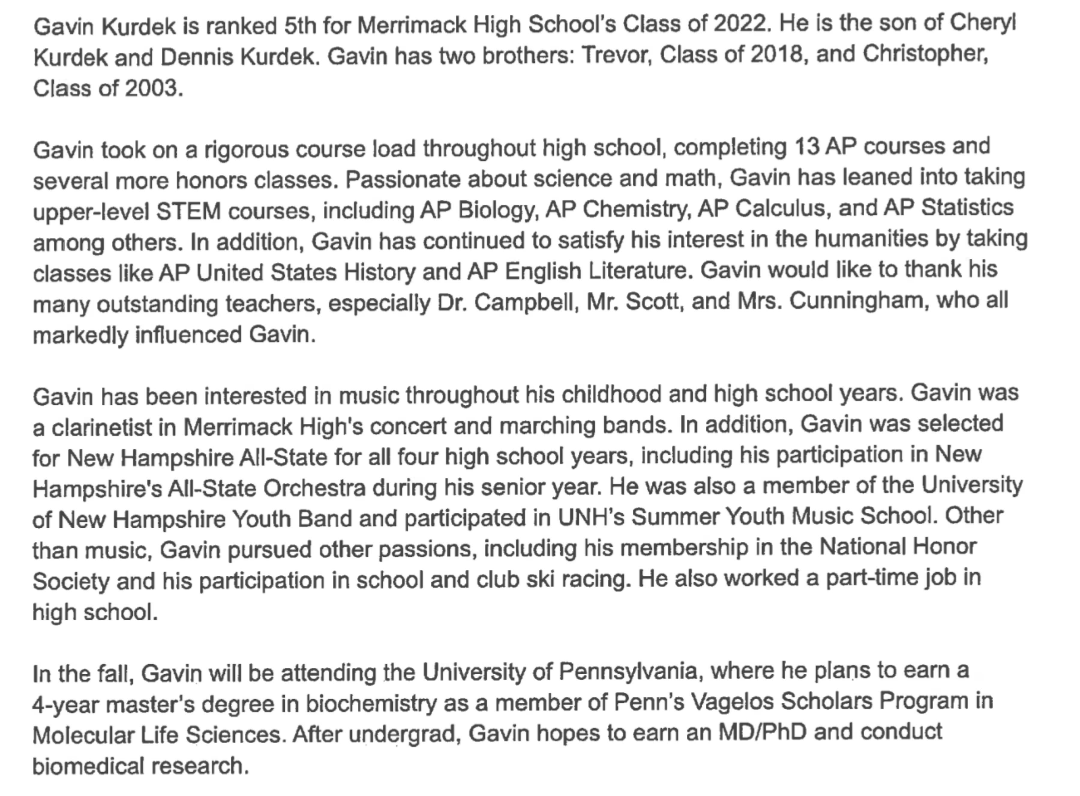 Here are the Top 10 students at Merrimack High School for the 2021-2022 school year.