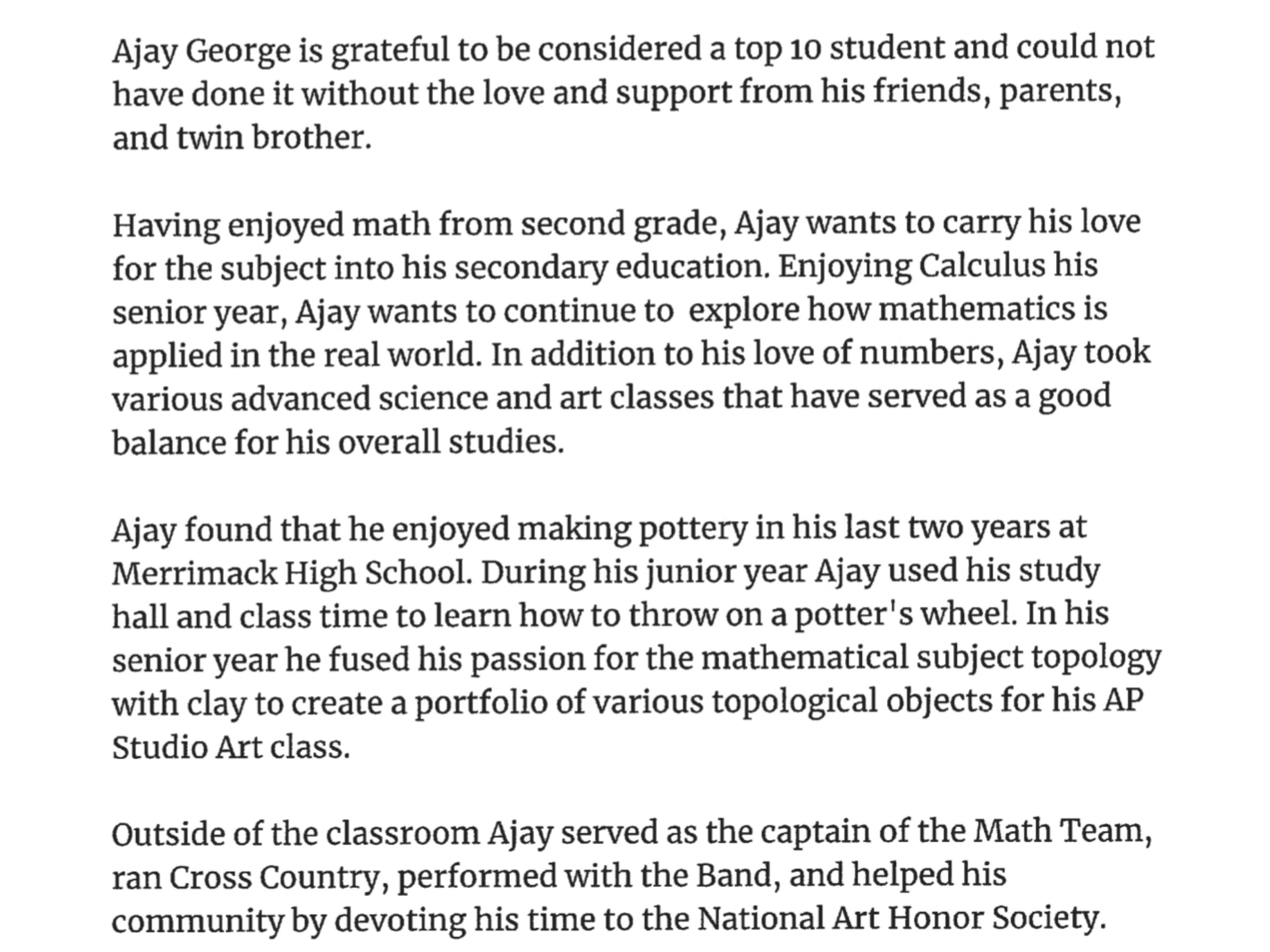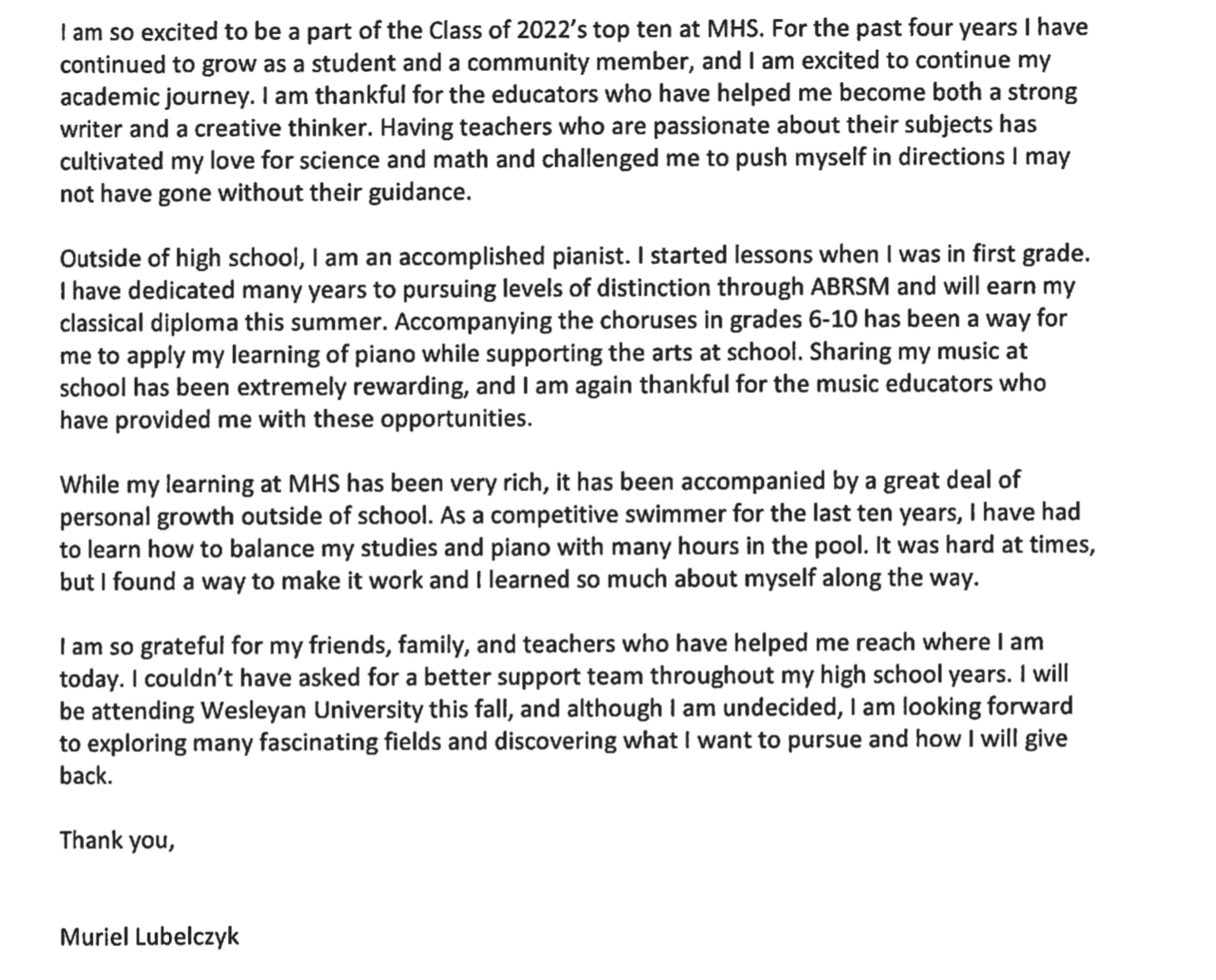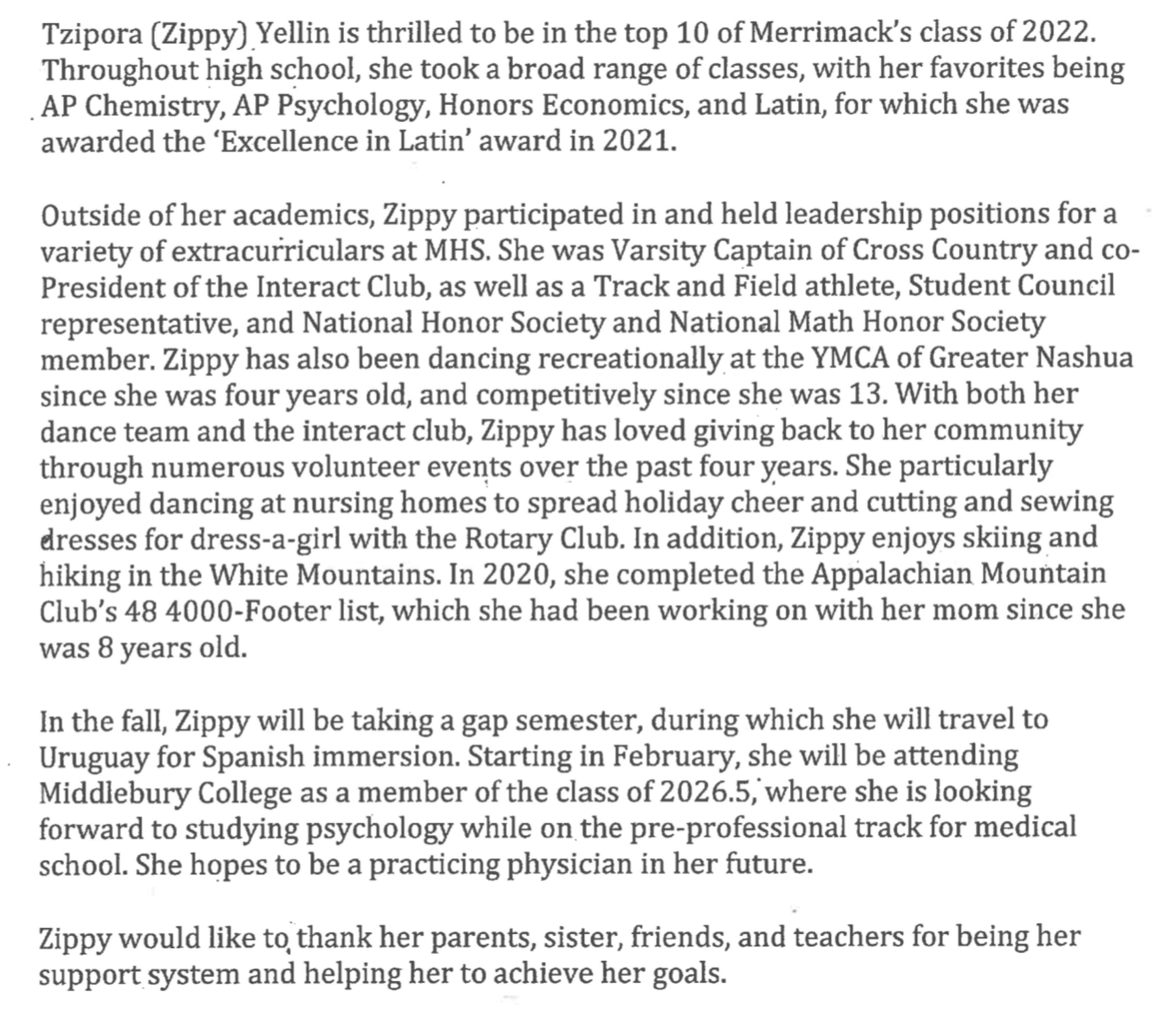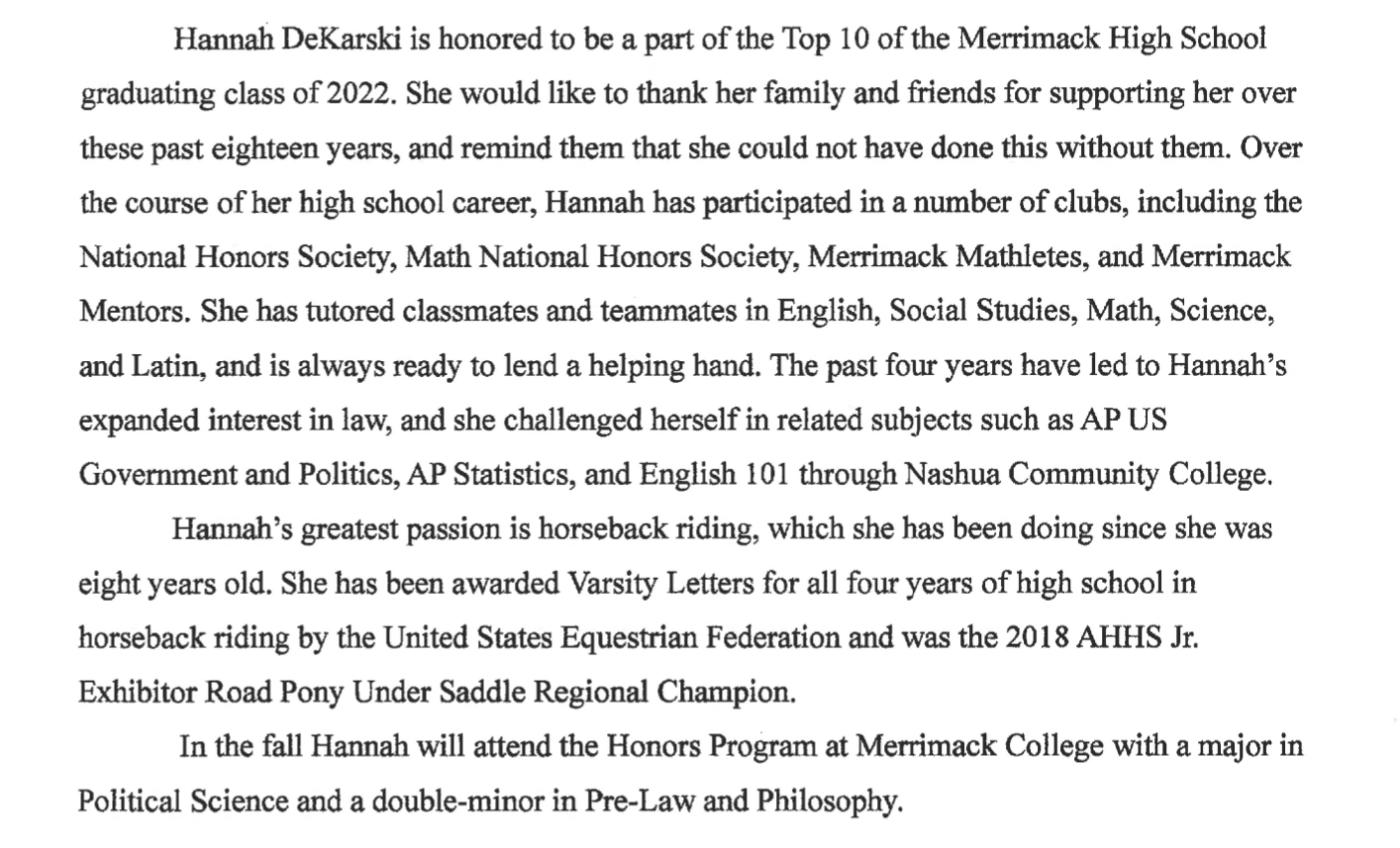 Here are the Top 10 students at Merrimack High School for the 2021-2022 school year.