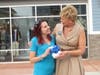 Hackett smiled from ear-to-ear as Merrimack Premium Outlets General Manager Elaine Devine presented her with a very special gift box containing five $1,000 Simon gift cards. Tied with a blue bow, Devine told Hackett the bow was made from a piece of the blue ribbon that was cut during