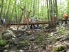 Sullivan embarked on an effort to rally his community and build the bridge in 2011. He spent months mapping out a plan, recruiting volunteers and gathering materials – including a donation of used FairPoint telephone poles, a key component of the project.