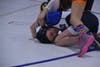 Photo caption 2: Emmi Haddad trying to get off the mat