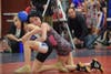 Photo caption 1: Ivey Johnson trying to get her opponent down on the mat