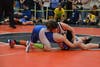 Photo caption 1: Hunter Adams sprawls on his opponent