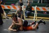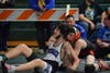 Photo caption 2: Liam Newman sprawling against his opponent