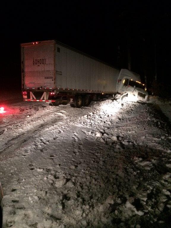 The trooper “determined that the cause of this crash was due to Daka was traveling too fast for the existing conditions causing the Tractor Trailer Unit he was operating to subsequently jackknifed and crash into the snowbank off to the right side of the roadway,” according to an alert.