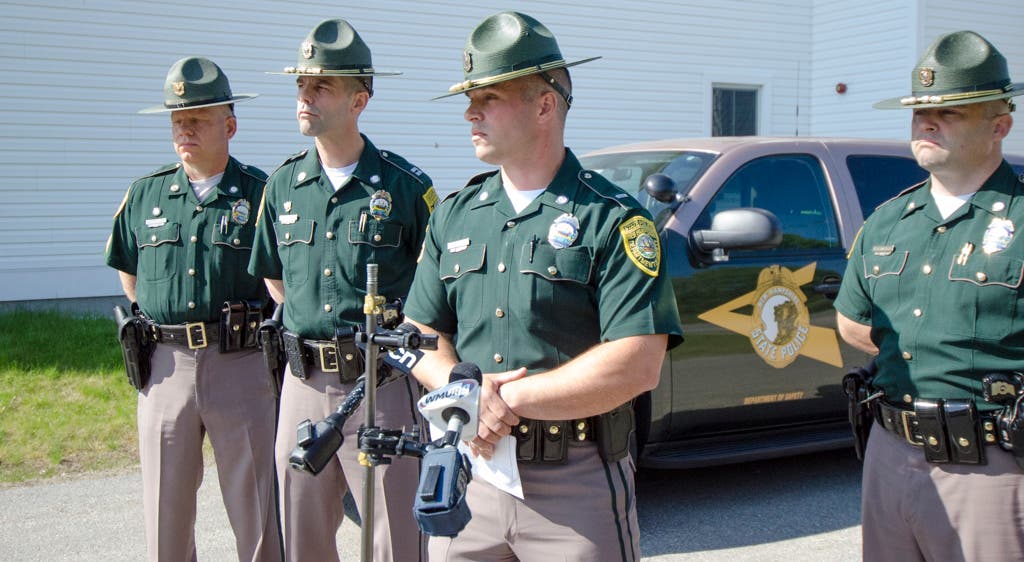 Caption: This morning, New Hampshire State Police update the media about a trooper that was struck on May 22, 2016. Credit: Jeffrey Hastings/Frame of Mind Photography. FrameofMindPhoto.com.