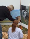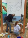 The artists are there during most days and willing to talk and visit with passersby and folks using the park walking their dogs and having lunch. The work is expected to be completed next week.