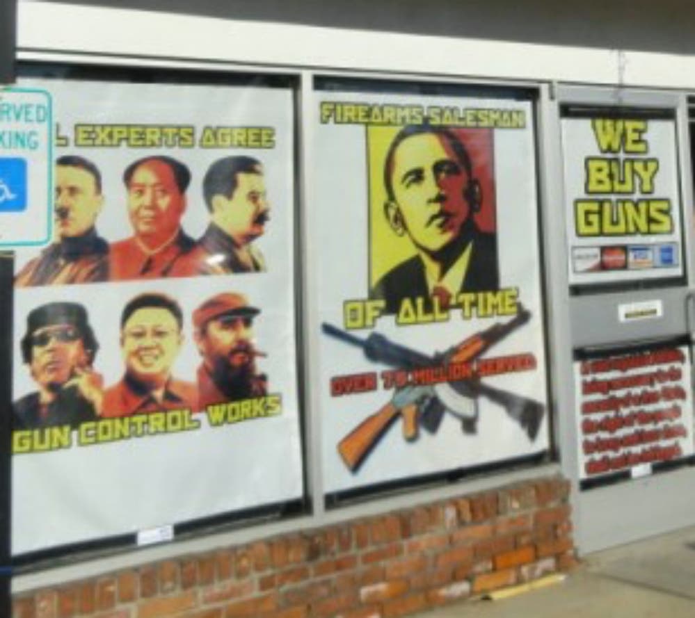 UPDATED: Resident also owns 619 DW Guns and Ammo, made national headlines after hanging posters of President Obama with Hitler, Stalin.