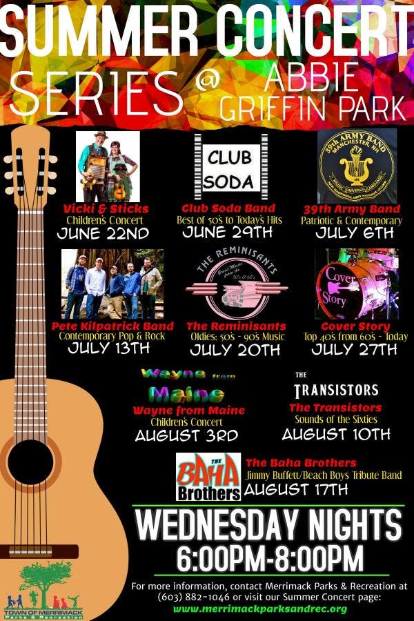 MERRIMACK, NH - Join the Merrimack Parks and Recreation department at Abbie Griffin Park on Wednesdays from 6 to 8 p.m. this summer and enjoy live band entertainment at the park.