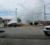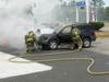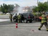 Merrimack Fire and Rescue teams douse vehicle at a gas station this afternoon.