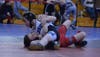 Photo Caption 2: Cayden Dine gets near-fall points in the championship match versus his Tyngsborough, MA opponent