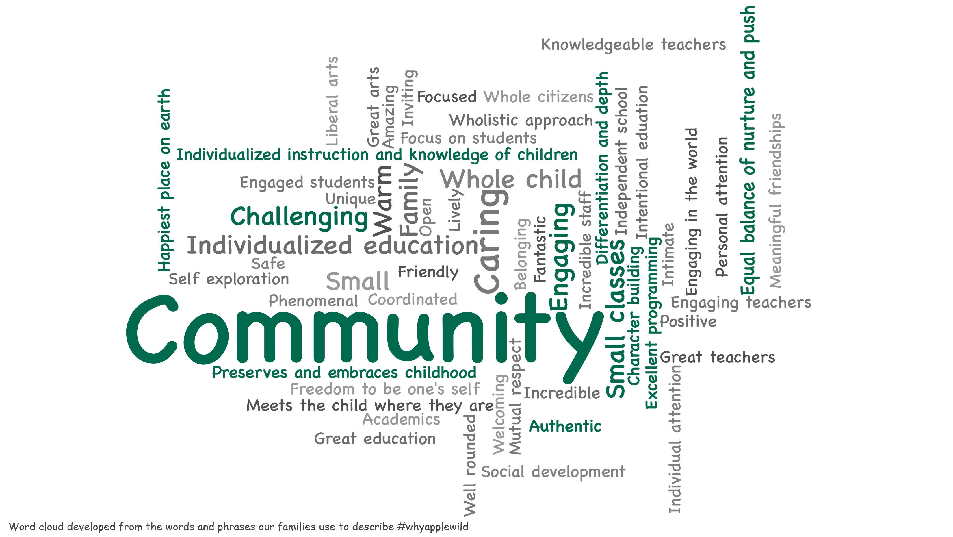 Applewild School is known for being a leader in education for nearly 60 years. We recently asked our families 'why Applewild' and their answers form our word cloud (above). Here's some of what else they told us: