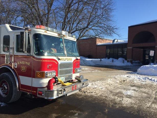 MILFORD, NH --- Around 7:30 AM EST this morning a teacher noticed that a skylight had shifted; around 7:45 AM EST this morning all students and staff members were unexpectedly evacuated from Milford High School by school officials, all students and staff went to the neighboring Milford Middle School. Later on, the Fire Chief Jack Kelly had said the skyline had dropped 3-4 inches, thus making dangerous conditions pertaining to safety.