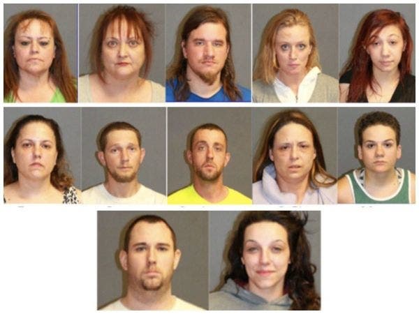 Photo: Twelve suspects arrested in the latest drug sweep the week of April 13, 2017. Top row, left to right: Doris Berry, Linda Rancourt, Dustin Gagnon, Erin Buckland and Amber Barton. Middle: Crystal Barton, Hadley Jones, Adam Sundstrom, Jill Lapierre and Priscilla Matos. Bottom: Travis Deluca and Leah Landino. (Credit: Nashua Police Department)