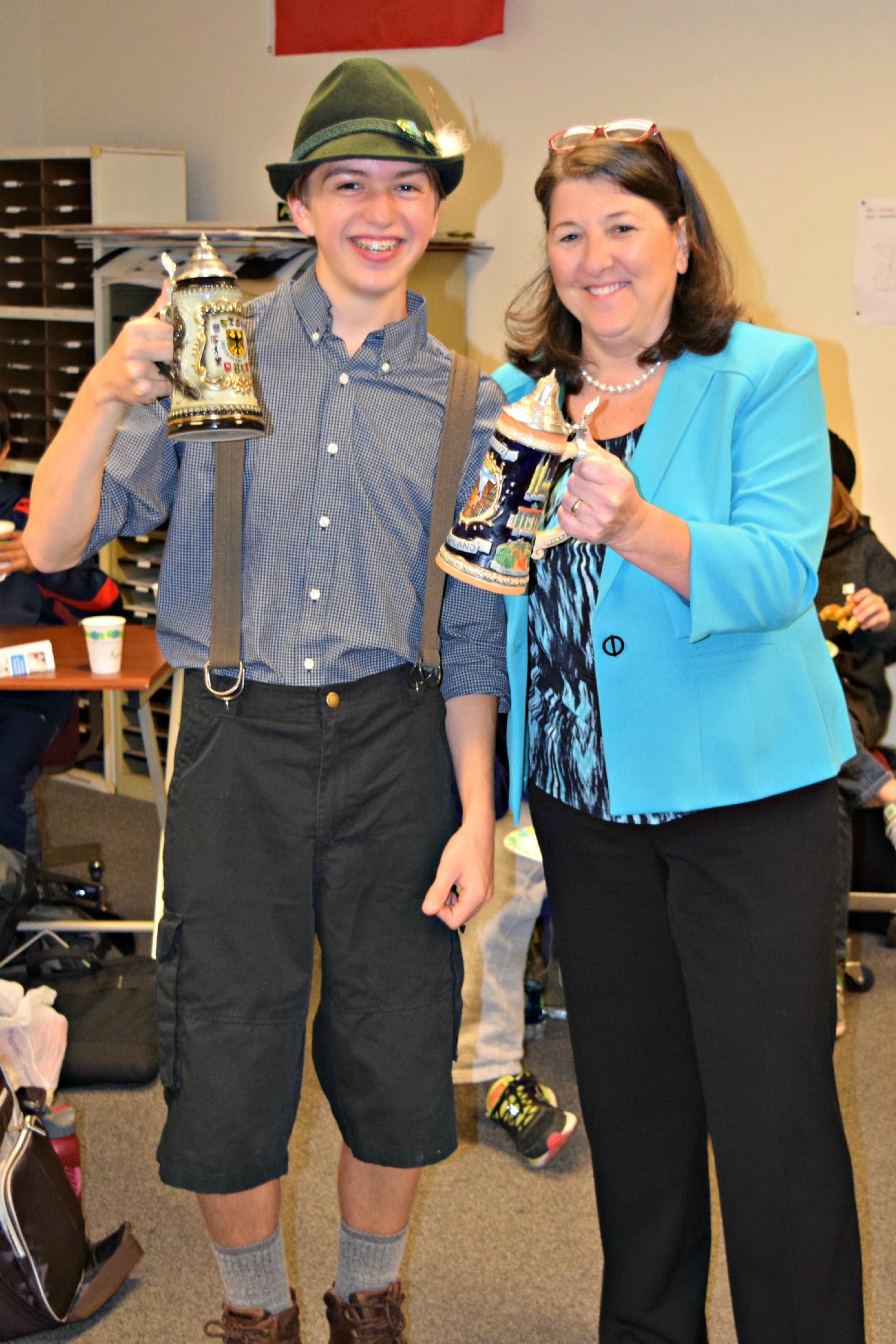 Nashua Mayor Donnalee Lozeau with sophomore Ian Ayer at the “Oktoberfest, a Bavarian Cultural Experience” SPARK Conference session.