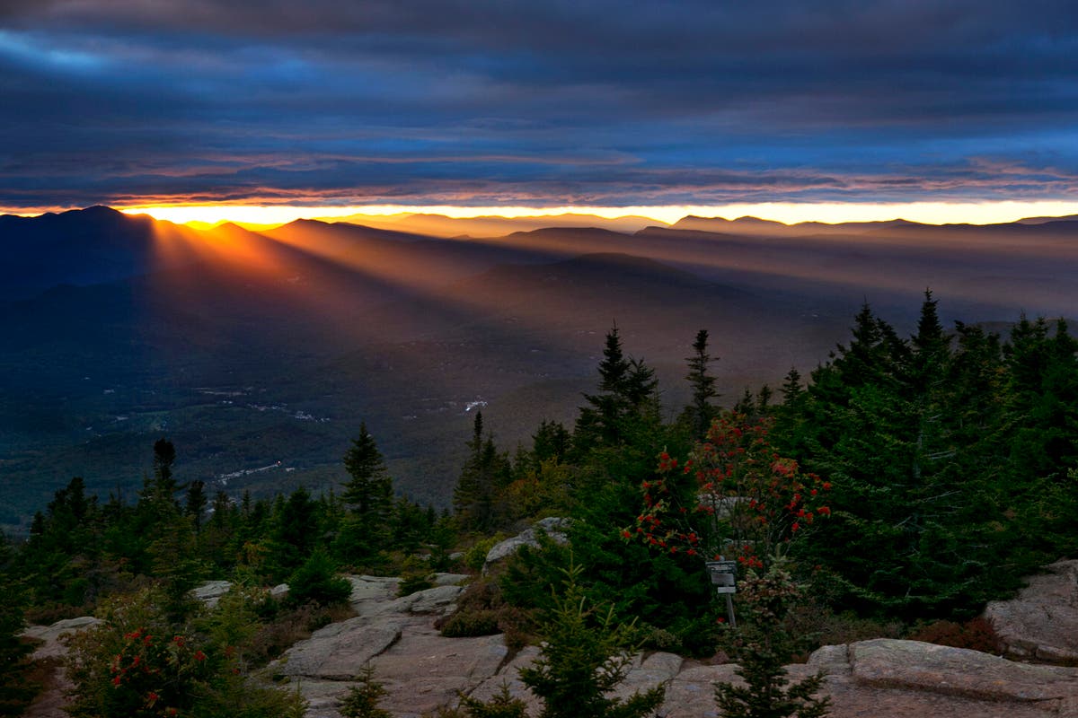 Photo: Sun rays spill through a gap between the clouds and the White Mountains as the skies begin to clear above Bartlett, New Hampshire, on Friday, Sept. 22, 2017. (Credit: Associated Press Photo/Robert F. Bukaty)