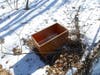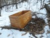Can you help me identify what the box is and perhaps why it is there in the forest along the Nashua River? This box is approximately four feet long and perhaps 18-24 inches wide. It appears sturdy and well-crafted out of quality inch-thick plywood. There is what looks like a partial top or lid placed nearby along a fallen oak. The lid is made from the same material. Between the lid and the box is a shallow hole that fits the box quite precisely as if it was dug for the box or was possibly created by the box being dropped from a considerable height to its current resting spot. From initial inspection, the mystery box only contains leaves, twigs, snow and ice.