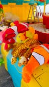 For $3 kids pluck a duck from the miniature swimming pool. Each duch has an S, M or L on it. So if your duck has an "S" you win a small prize, which can be traded up for a larger prize if you get another "S" duck.