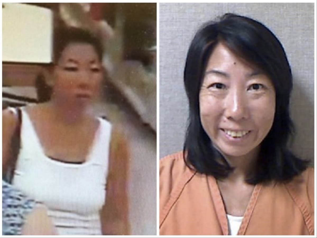 Photo: Police released a recent surveillance photo of theft suspect Amy Barron at the Hudson Hannaford (left) and her mugshot (right). (Credit: Hudson Police Department)
