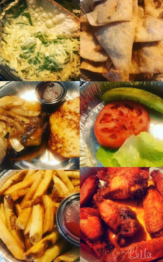 Today’s order .. the BBQ Bacon Burger (sounded delicious), Buffalo Wings, Artichoke & Spinach Dip and Chips.