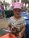 PHOTO 1: Lilah Sullivan, 7, of Nashua works on a craft and shows off a new animal hat she made during Pheasant Lane Mall’s Kidgits Back to School event on Saturday, August 27th.