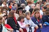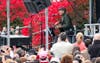 At least three hours before the 2 p.m. rally, a long line snaked its way from Elm Street down to Main Street. However, once the line started moving, before noon, people were able to find limited space on bleachers and ample standing room.
