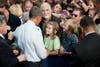 An estimated 8,500 Obama supporters fleshed out the grassy knoll in front of Elm Street School Saturday for a stop by President Obama.