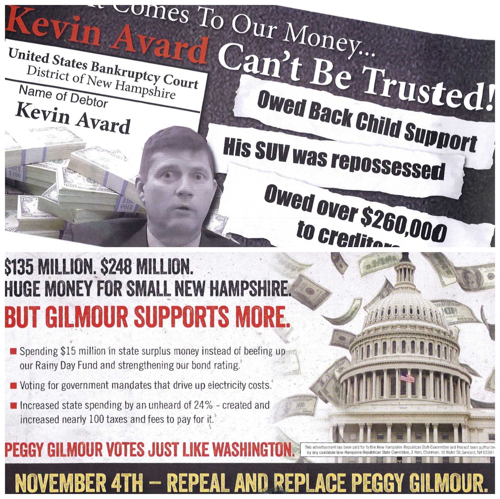 Former state Rep. Kevin Avard, R-Nashua, is attempting to unseat Gilmour. On top of this bankruptcy mailer, Avard recently made headlines after it was revealed that he was arrested in the late 1990s.