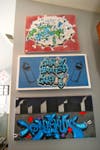 "The paint you buy at Home Depot wouldn't work for graffiti – all this paint is imported from other countries, like Germany, Spain, Canada, China. They don't manufacture it here anymore. This has high opacity, and low pressure," he says, showing off one of the cans, designed to look like a work of art, as well.