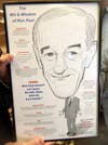 "Congressman Paul," he said more than once, as he moved several steps behind the GOP candidate. He was carrying with him a framed caricature that he'd penned himself, titled "The Wit and Widsom of Ron Paul," featuring a good likeness of the wiry Texas lawmaker.