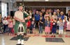 The processional featured uniformed soldiers from each branch of the military carrying the flag of their branch, escorted in by a 7th grade student, as well as Pelham’s Sean Markey playing bagpipes. The SPSC band, now in its third year, also joined the program, playing three pieces including “This Land is Your Land’ and “Trumpet Voluntary”. Students read excerpts from patriotic essays, performed poetry honoring the sacrifices of the military, and read from letters written by soldiers in a segment entitled “Last Letters Home”. The program also includes a tip of the hat to the 8th grade for their year-long stewardship of the school flags, and a ceremonial moment where the responsibility is then passed along to the 7th graders going forward into eighth grade next year. Eighth grader Andrew Cavanagh played “Taps” as a trumpet solo at the conclusion of the program.