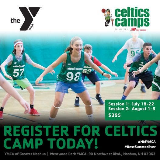THE CELTICS ARE COMING: Learn from our hometown favorites. Sign up for Celtics Camp at the Westwood Park Y. Available to ages 9-14, camps will run July 18-22 and August 1-5, from 8:30am-3pm. Price includes a jersey, meet and greets, camp and more. https://bit.ly/CelticsAtWestwoodParkYMCA #NMYMCA