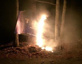 Photo: This Donald Trump campaign sign was set on fire in Hollis. (Credit: Hollis police)