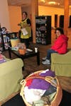 On Monday Zielie was unpacking yarn while visiting with her godparents, Dora and Bill Sullivan, who stopped by to see how things were coming together. Zielie, now of Wilton, grew up in Nashua, next door to the Sullivans.