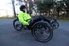 It's hard to catch up with Dominic Morello, on foot. He makes tracks. By car, you still have to over-anticipate how fast you think he's going, if you should want to get in front of him so you can ask him about his recumbent trike.