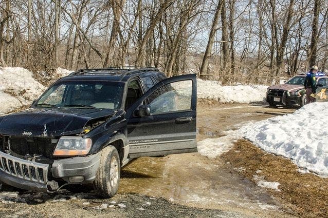 Photo: The Jeep that George Bally allegedly drove during a police pursuit that ended in Nashua Monday. (Credit: (Jeffrey Hastings)