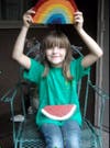 The majority of the pieces are designed as watermelons. Some pieces have natural nicks and holes which give the appearance of “a bite” out of the watermelon, says her mom. The rainbows appeal to Charity's sense of hope.